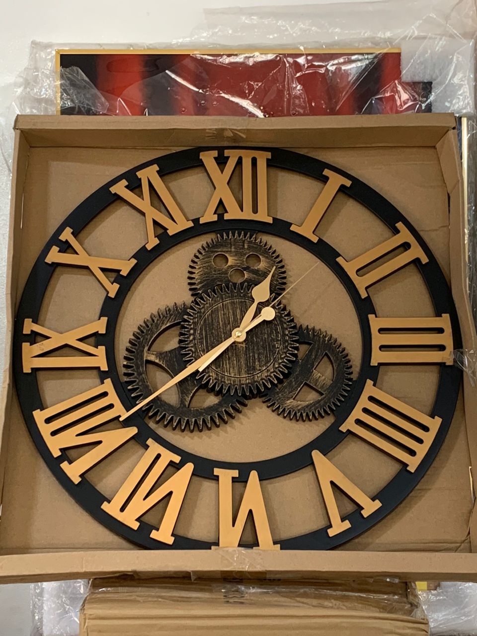 Cette horloge murale combine style industriel et design contemporain. Avec ses chiffres romains dorés et ses engrenages décoratifs visibles, elle apporte une touche vintage et élégante à tout espace. Idéale pour les salons, bureaux ou cafés, elle est autant un objet fonctionnel qu’un élément de décoration.